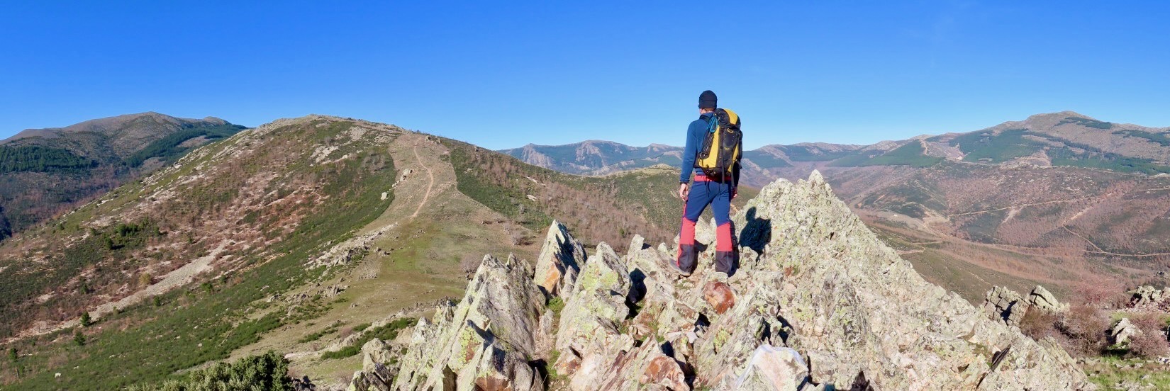 La bajada se hace hacia el SE, pasando por Peña Atalaya (1375 m) y Las Gargantillas, donde la senda se difumina un poco entre las jaras y hay que ir atentos a los hitos, que los hay y sirven de gran ayuda.